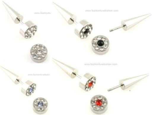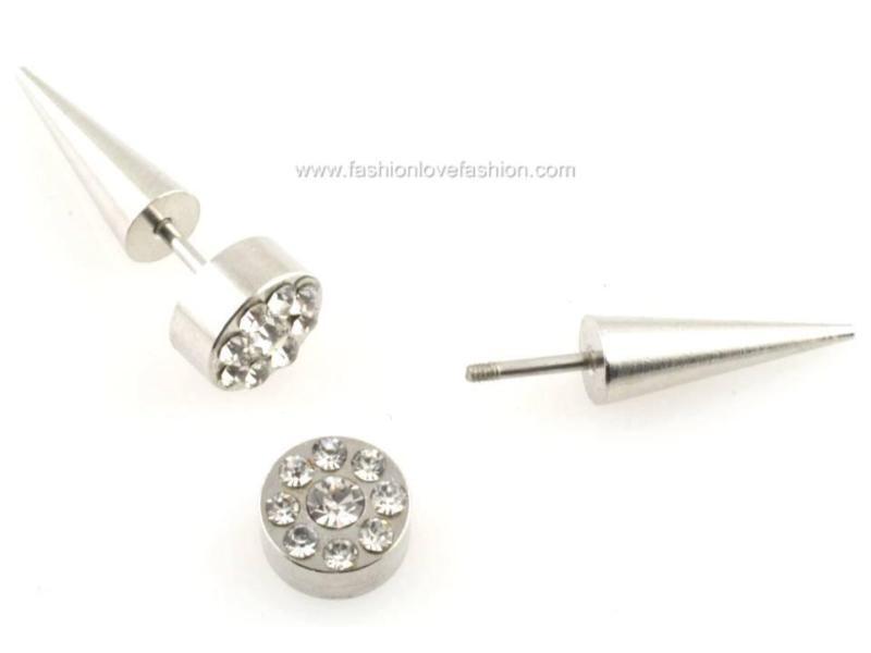 - 1PAIR PIERCED STAINLESS STEEL RHINESTONE STUD EARRINGS Men Women