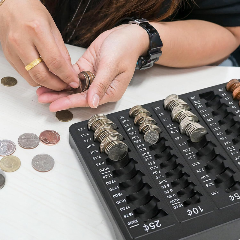 Coin organizer money tray is ideal for sorting and organizing coins, using a coin organizer will save you time and increase your productivity.