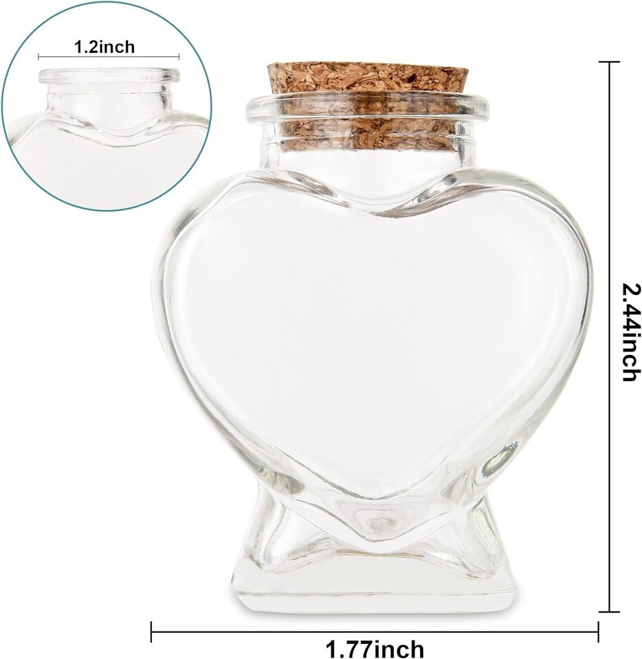 - 1PCS Empty Mini Glass Heart-Shaped Bottles Cork Stopper 1.77"L x 1.77"W x 2.44"H