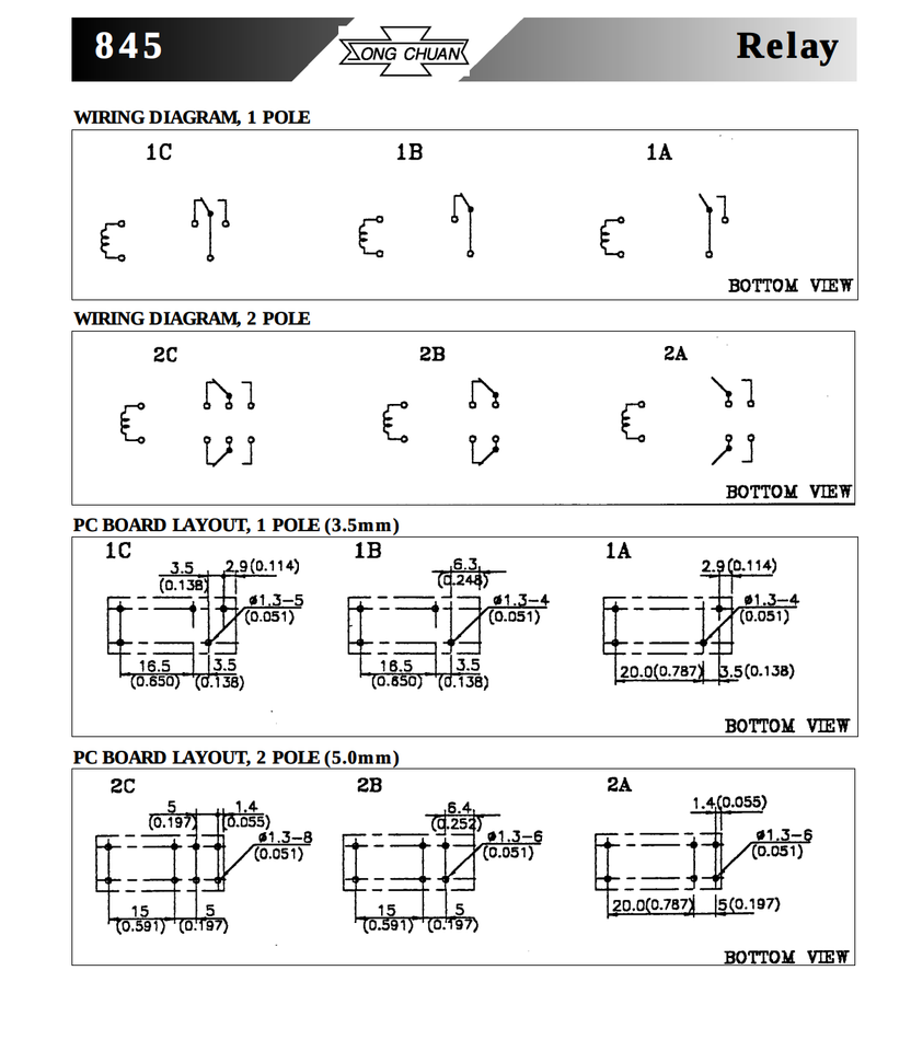 - 1X 845HN-2C-B-S SONG CHUAN Miniature PCB Power Relay 12VDC DPDT 8A TV-3