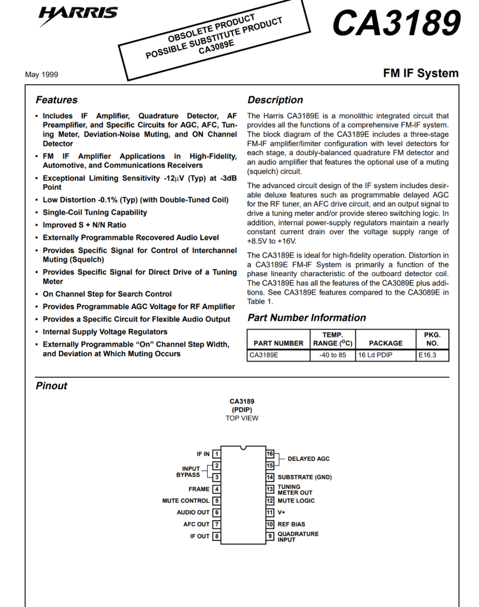 1 Piece - CA3189E HARRIS FM IF System DIP-16