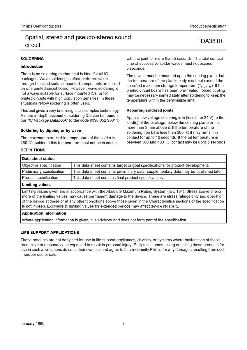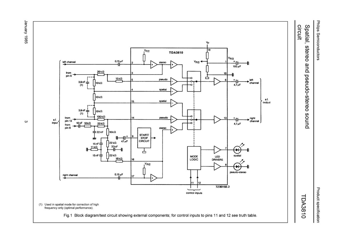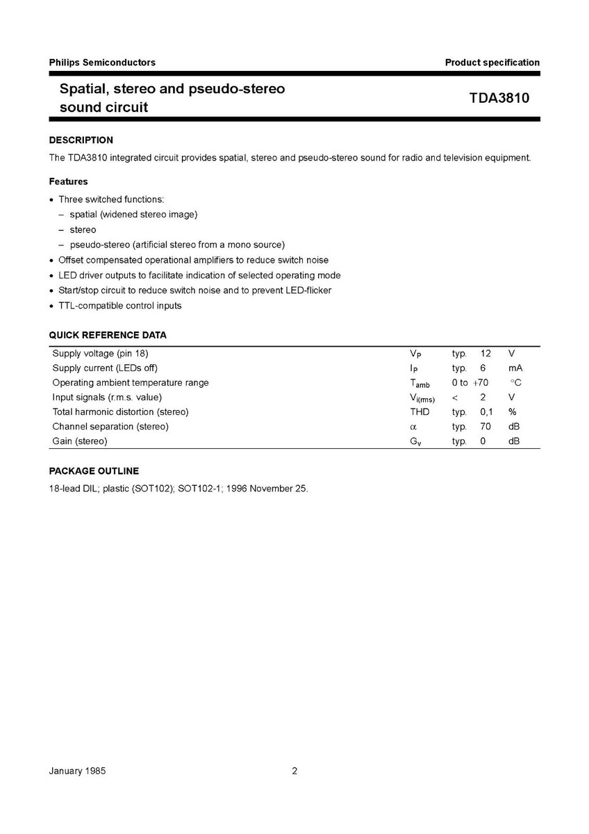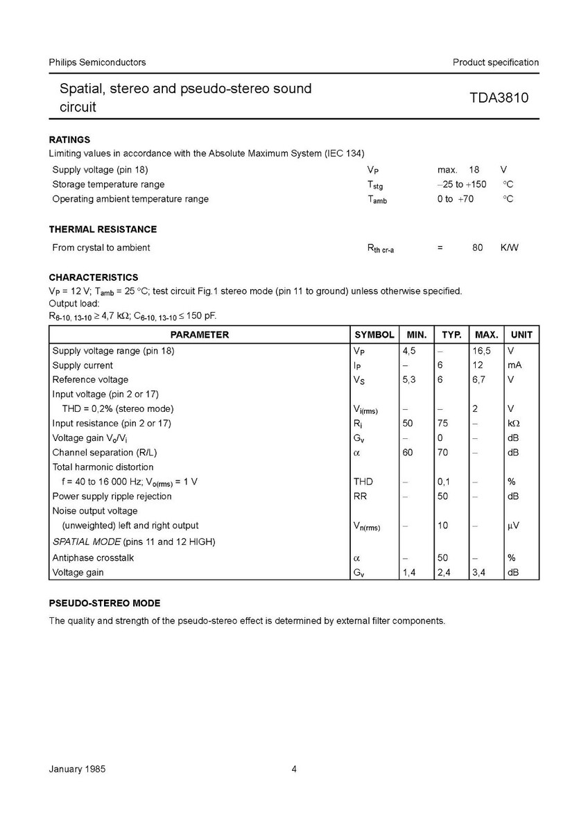 The TDA3810 is an integrated circuit audio processor designed to provide spatial, stereo, and pseudo-stereo sound effects in radio and television equipment.
