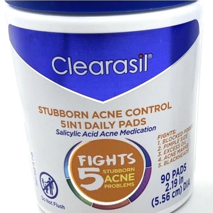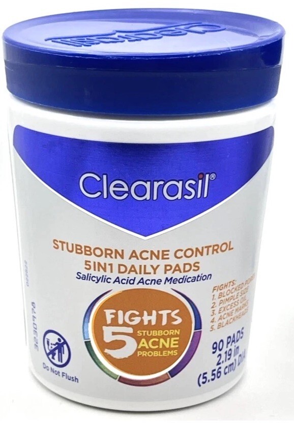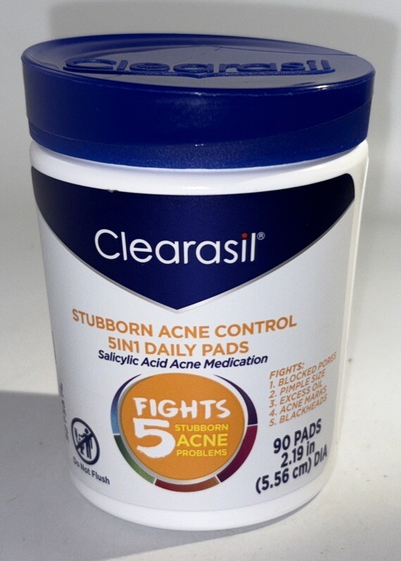 You Will Receive 1 ea 90 ct Pack Clearasil Fights 5 in 1 Daily Cleansing Pads Stubborn Acne Control-BRAND NEW-SHIPS N 24 HOURS