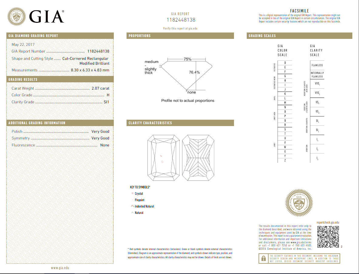 - 2.07 Carat Loose H /SI1 Radiant Cut Diamond GIA Certified