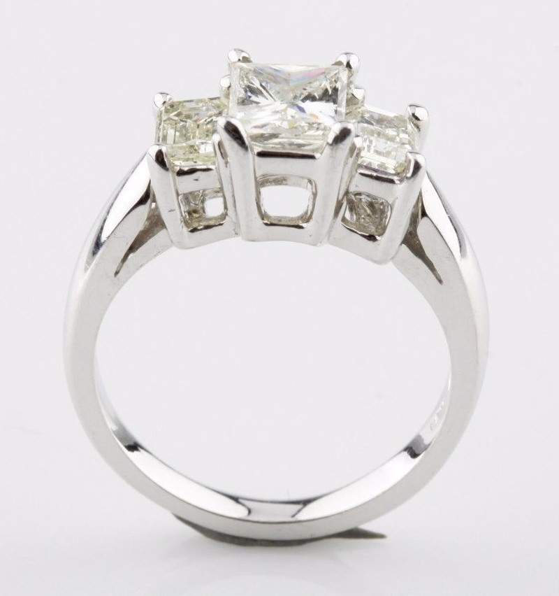 18k White Gold Three-Stone Princess Cut Diamond Engagement Ring Size 5.5 TDW = 2.07 ct