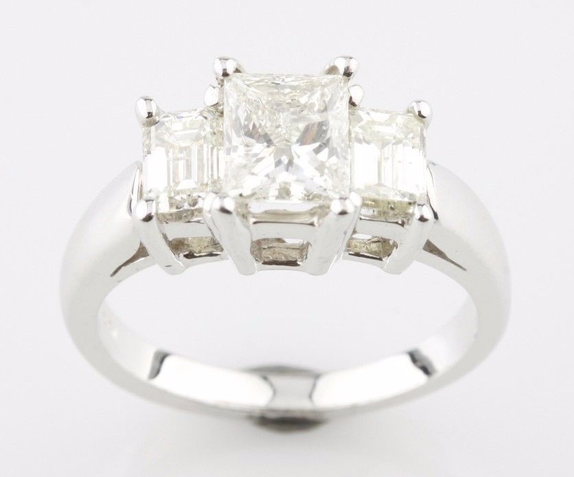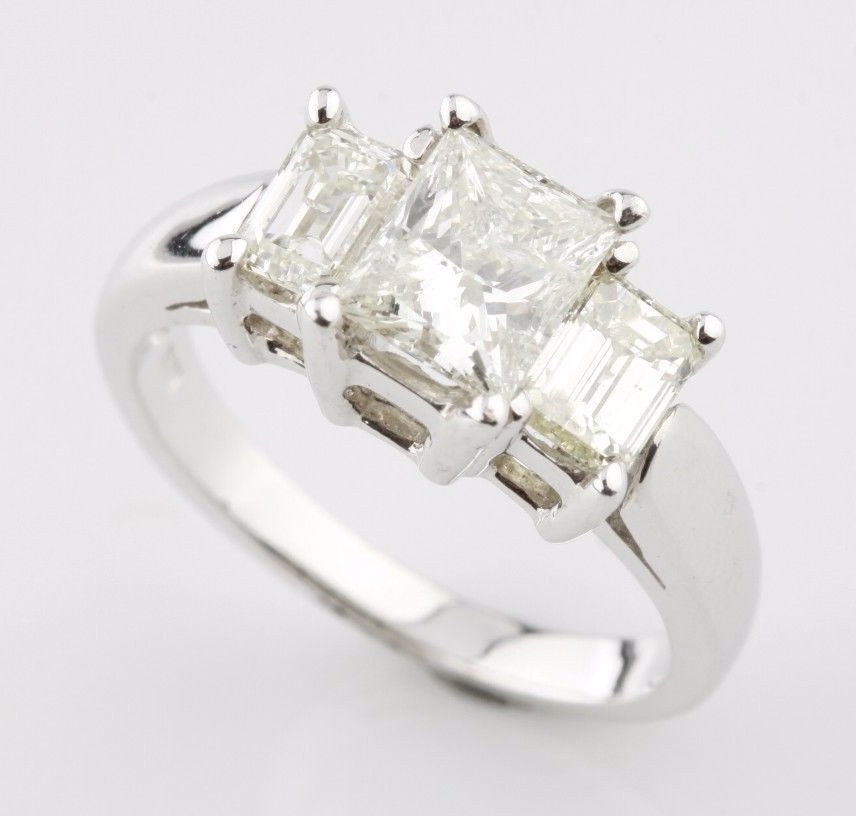 - 2.07 carat Princess Cut Diamond 18k White Gold 3-Stone Engagement Ring Size 5.5