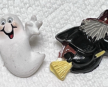 The ghost has wiggly eyes and measures 1.5 inches long. The witch is about 2 inches.