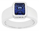 - 2.91Ctw Emerald Cut Blue Sapphire 14K White Gold Over Solitaire Band Men's Ring