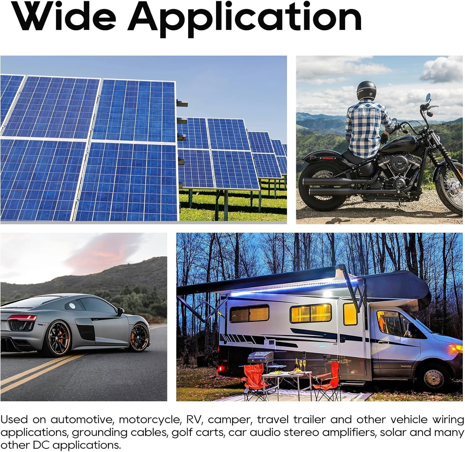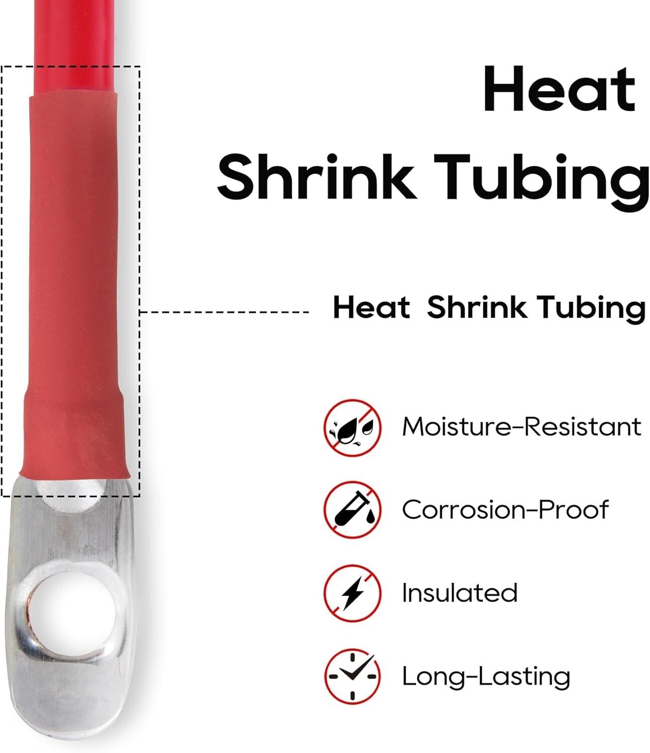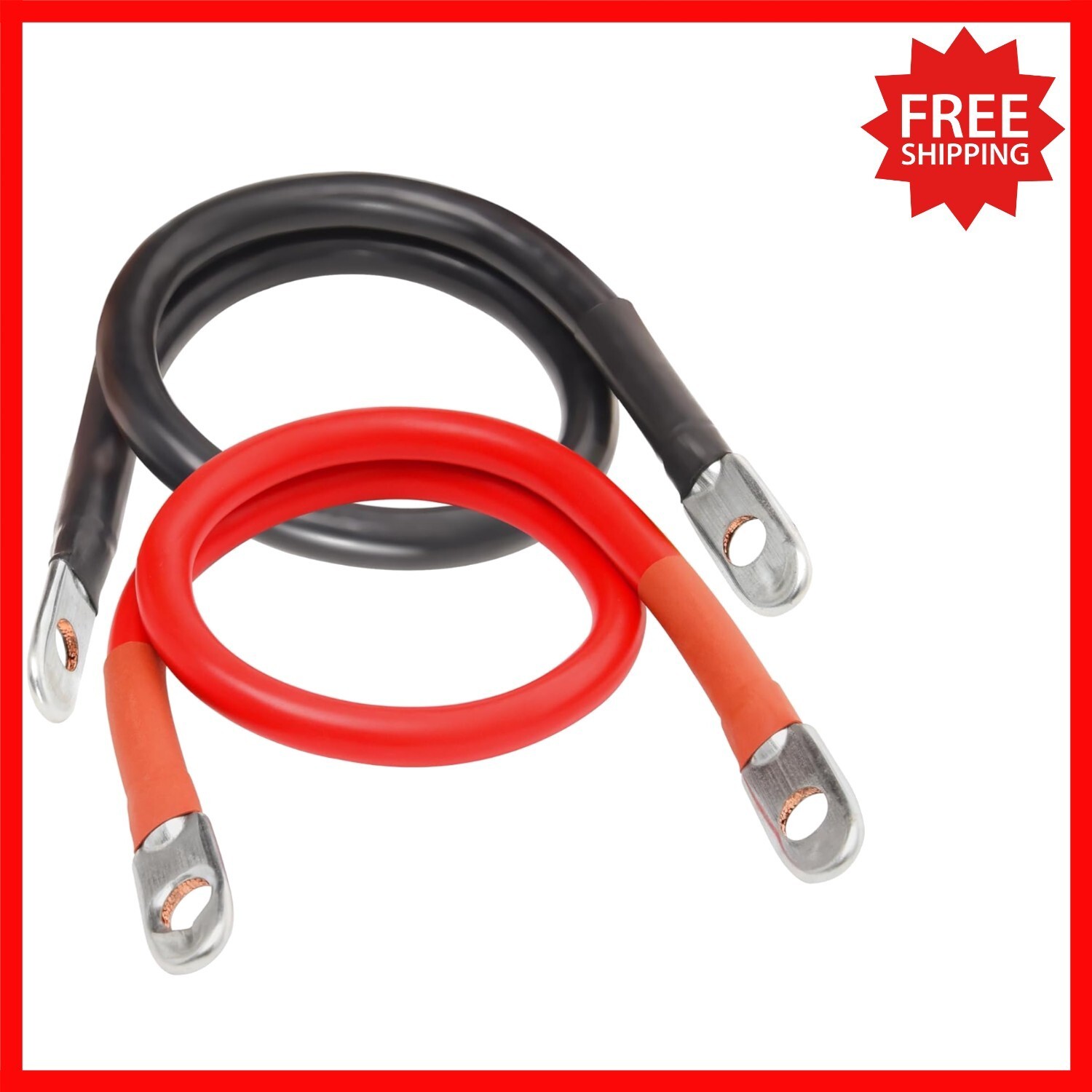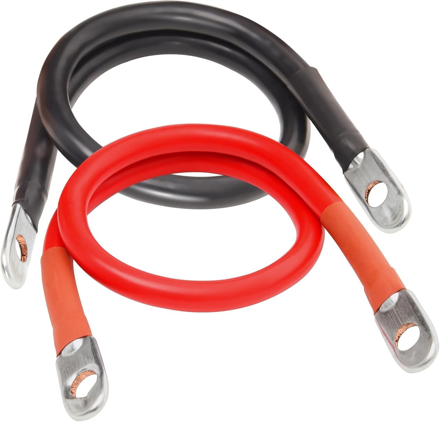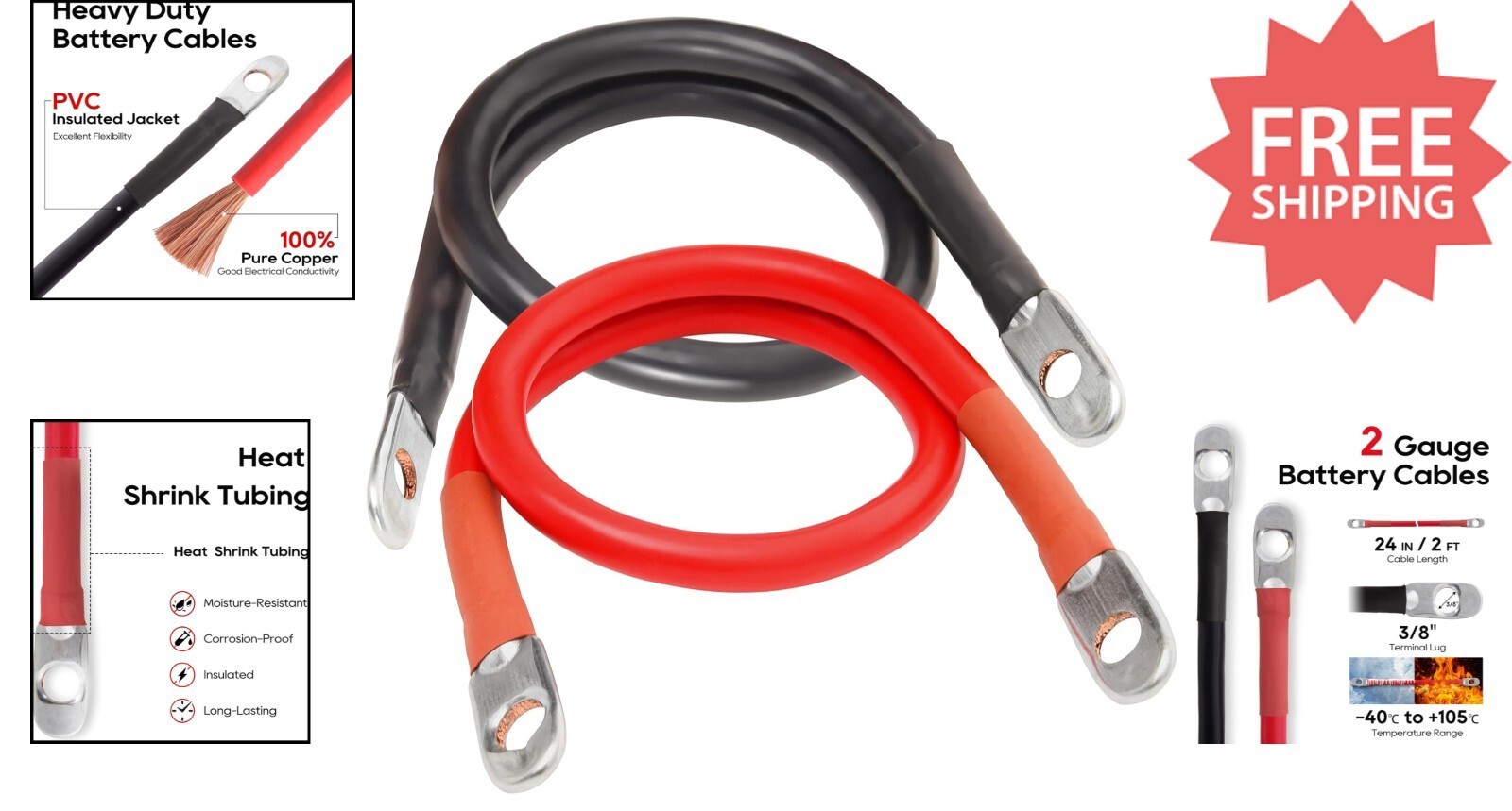 - 2 AWG Battery Cables Set - 24" Pure Copper, Waterproof & Heat Resistant