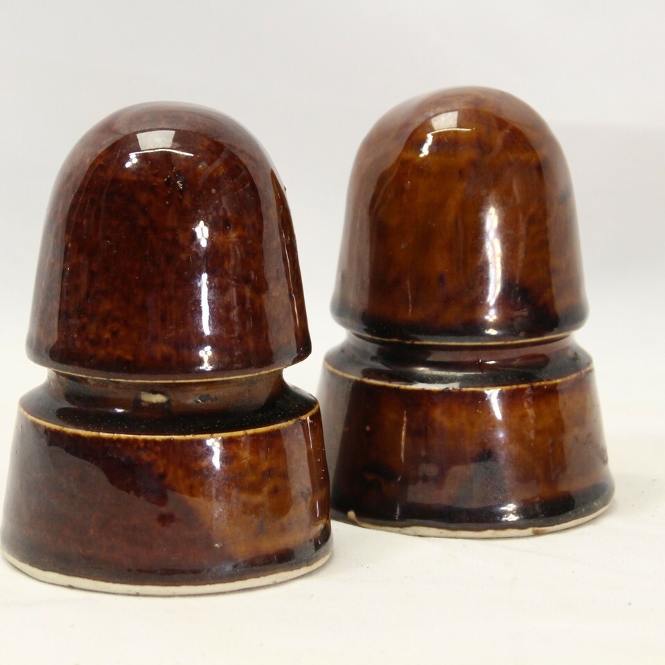 - 2 Antique Insulator Porcelain Ceramic Electrical Powerline Telephone Pole Brown