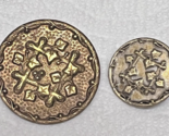 2 Antique Metal Buttons w Ivy & Trellis Design 1 1/8 & 3/4 inches