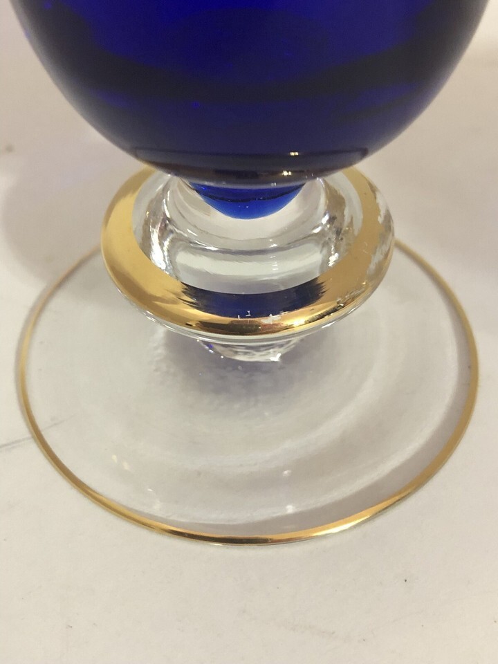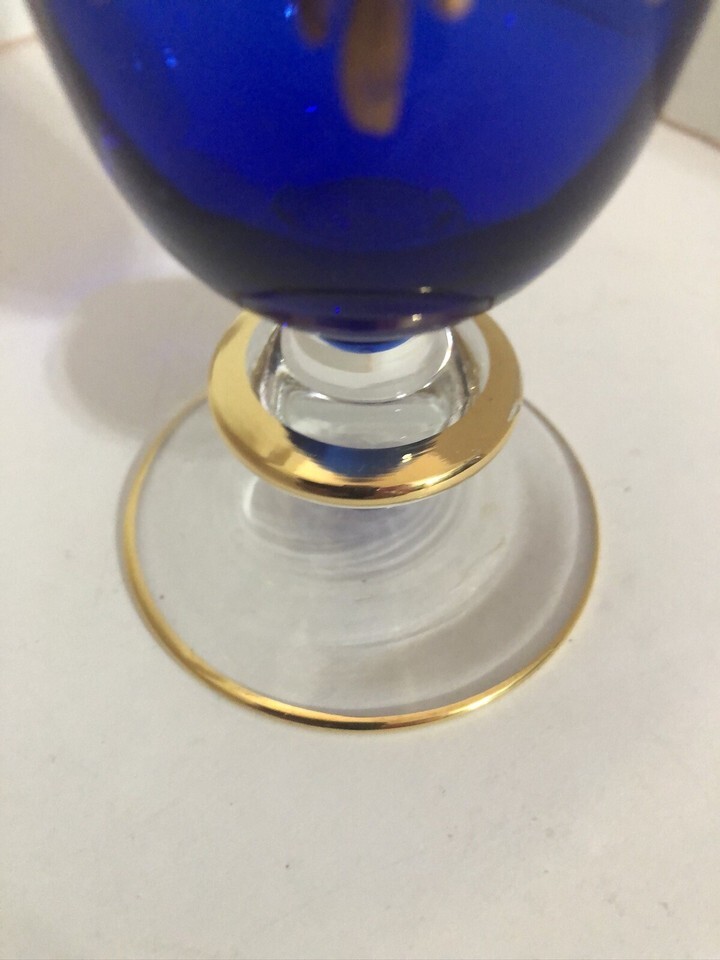 - 2 Arte Itálica Medici Cobalt Blue & Gold Gilded Crystal Goblets 24K Gold 4oz