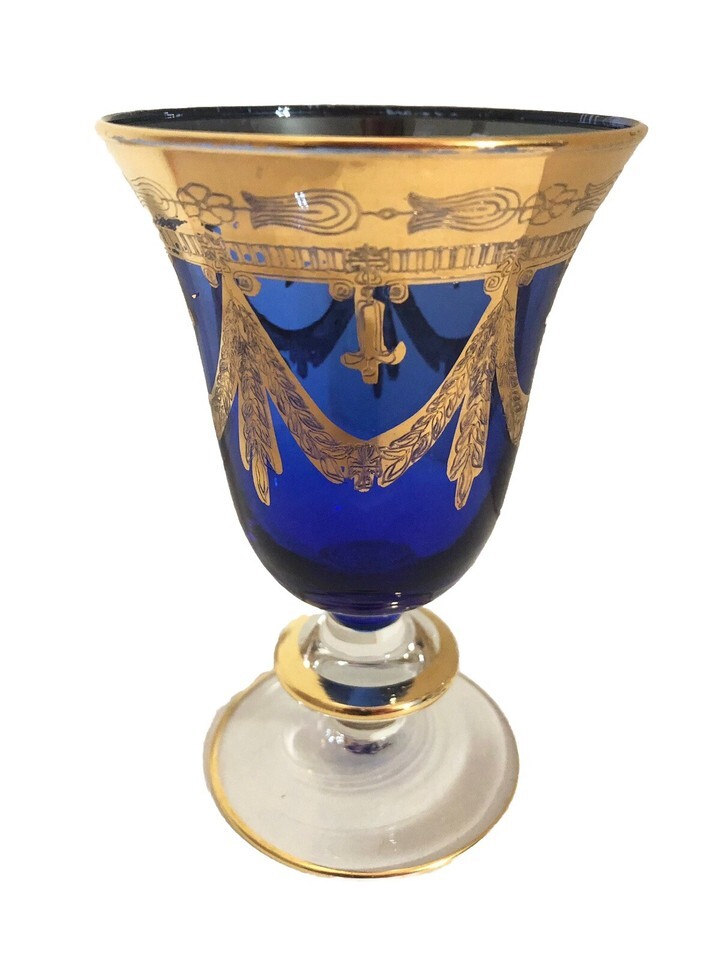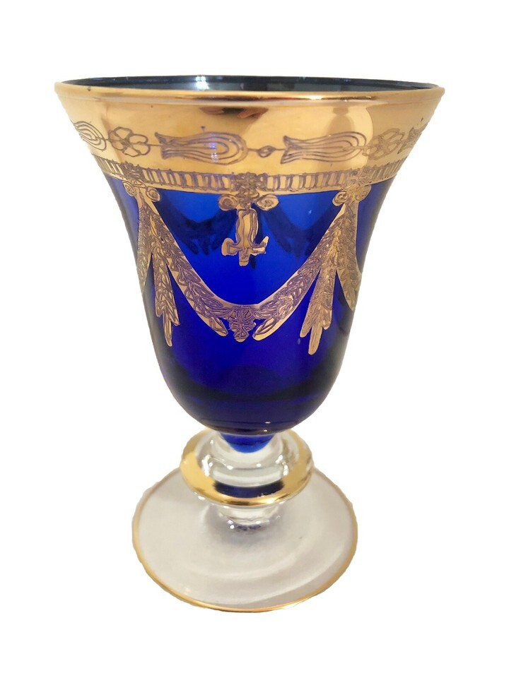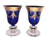 2 Arte Itálica Medici Cobalt Blue & Gold Gilded Crystal Goblets 24K Gold 4oz