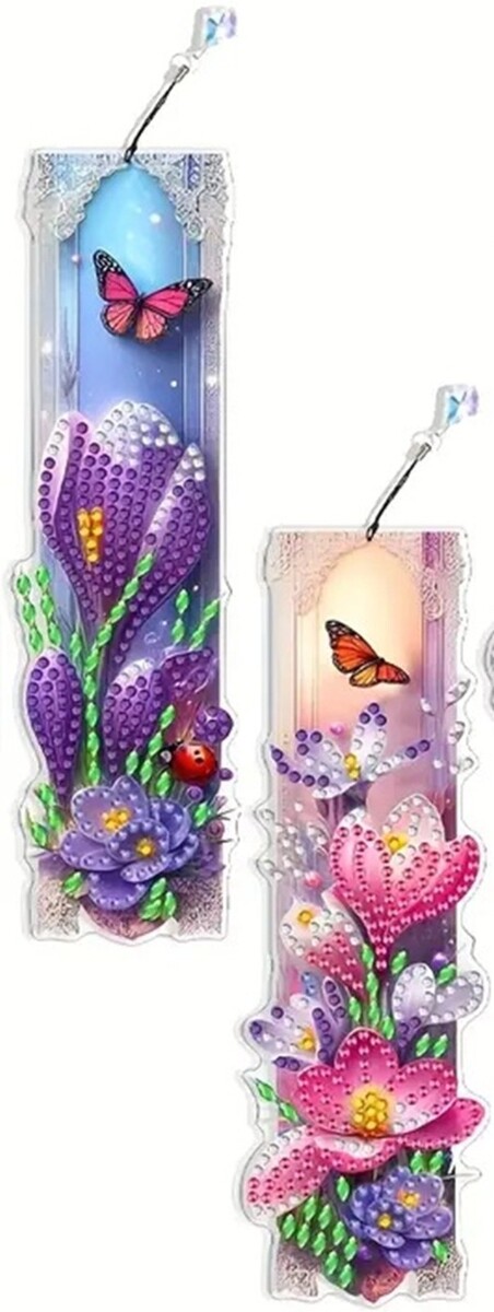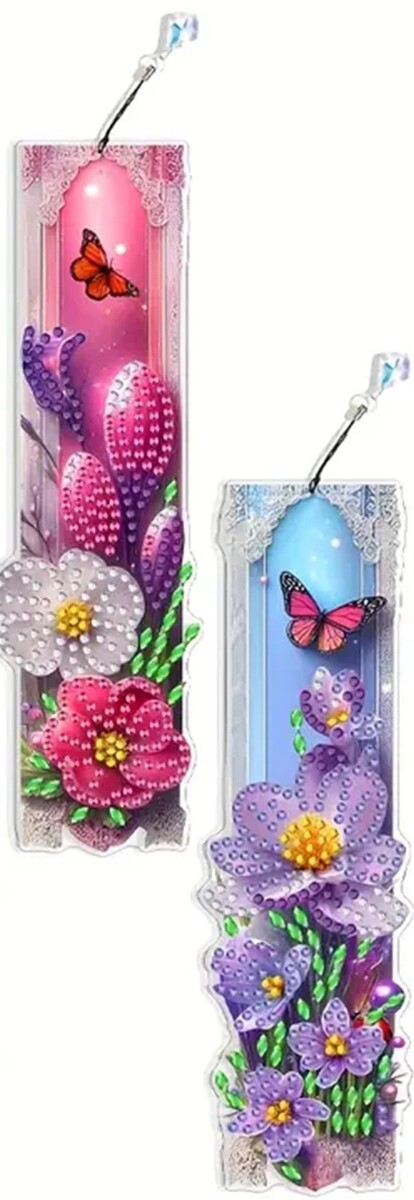 Enhance your reading experience with these beautiful floral diamond painting bookmarks. Handmade and sealed, these rectangle-shaped bookmarks feature a vibrant multicolor floral pattern with shiny jewels for added sparkle. Made from plastic, acrylic, and shiny jewels, these flexible bookmarks are perfect for women who love a touch of elegance while enjoying their favorite books. Choose from a set of completed bookmarks to add a personalized touch to your reading routine.