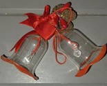 2 Bell Cluster Clear Glass Christmas ornament Red Rim Pine cones 3"