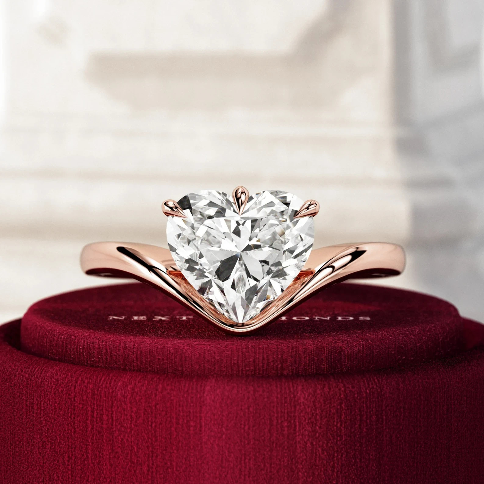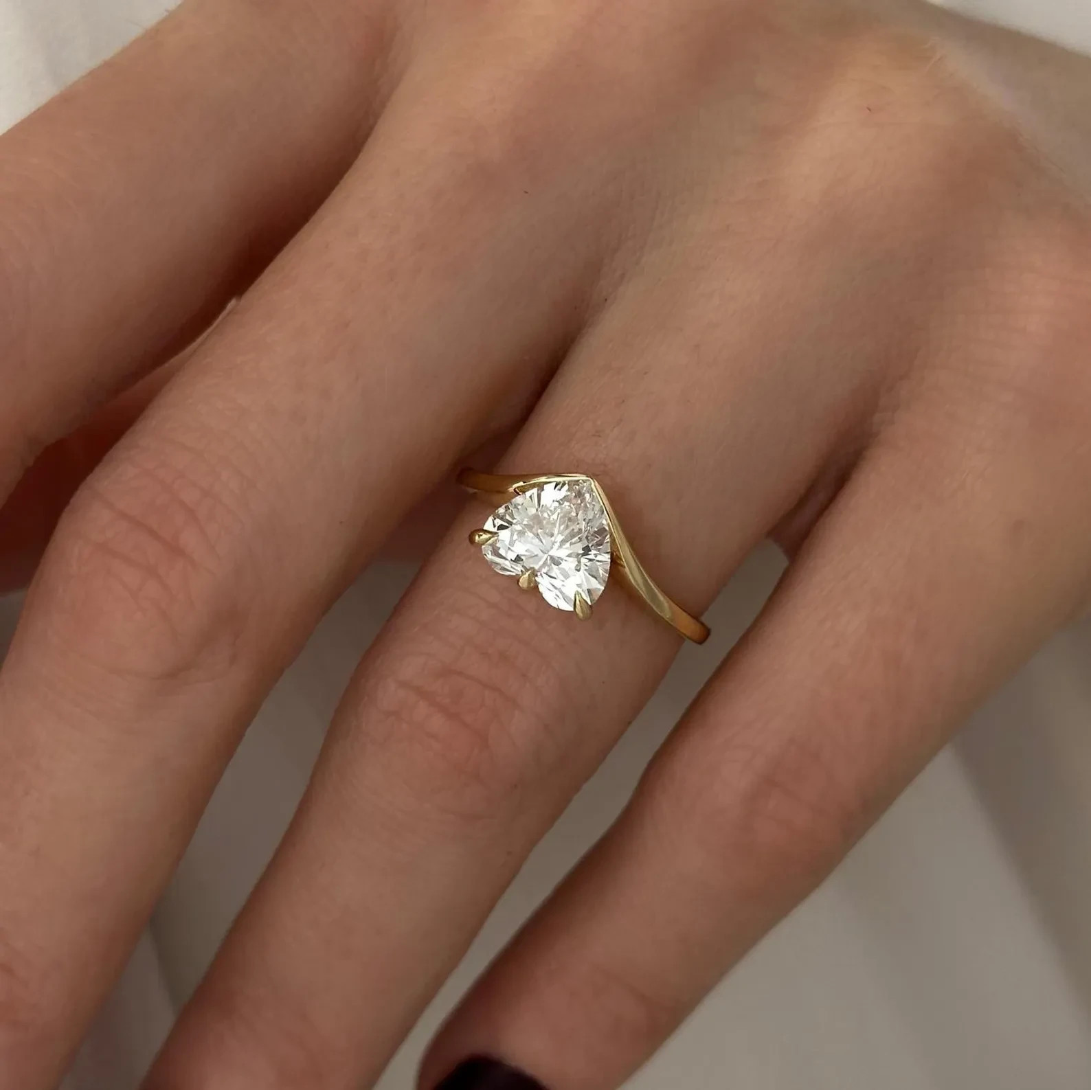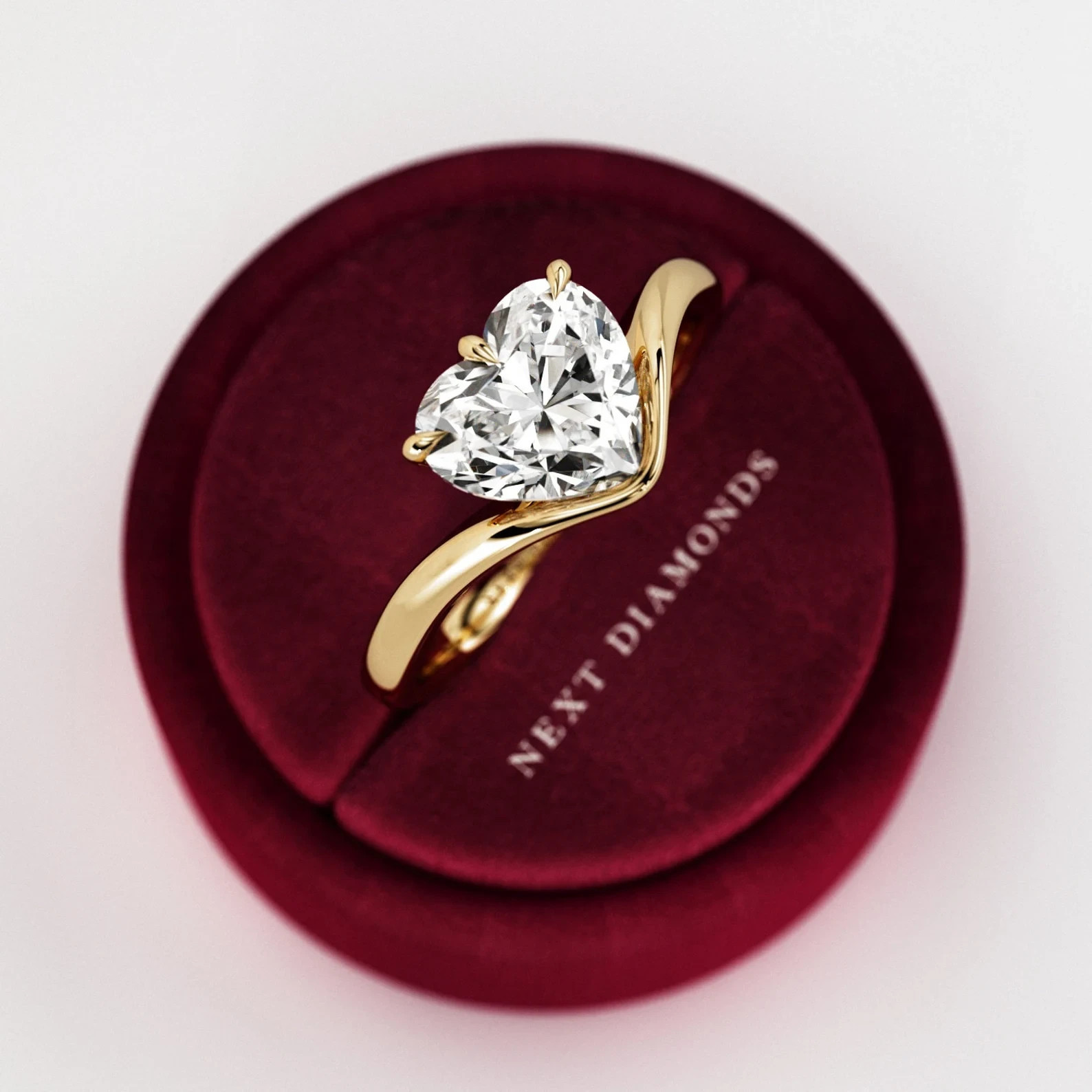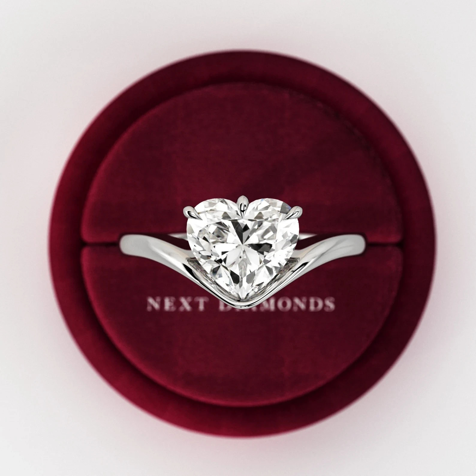 - 2 Carat Heart Shape Lab Grown Curved Heart CVD Diamond Solitaire Engagement Ring