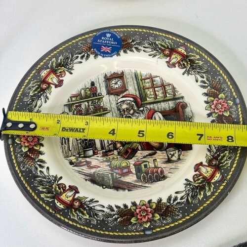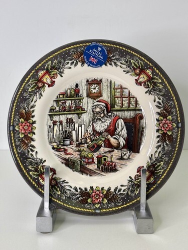 - 2 Christmas Salad Plates Santa Workshop Royal Stafford England New 8.5 "
