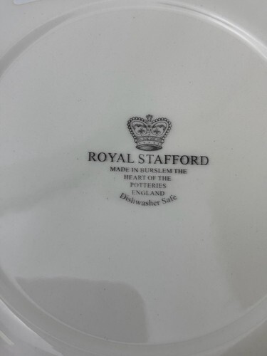This product is a set of 2 Christmas salad plates, featuring a Santa Workshop design by Royal Stafford. The plates have a diameter of 8.5 inches and are made of porcelain, showcasing a multicolor Nature Print pattern. These round plates are ideal for serving salads or as charger plates for a festive dining experience. Made in England, these plates add a touch of holiday charm to any table setting.
