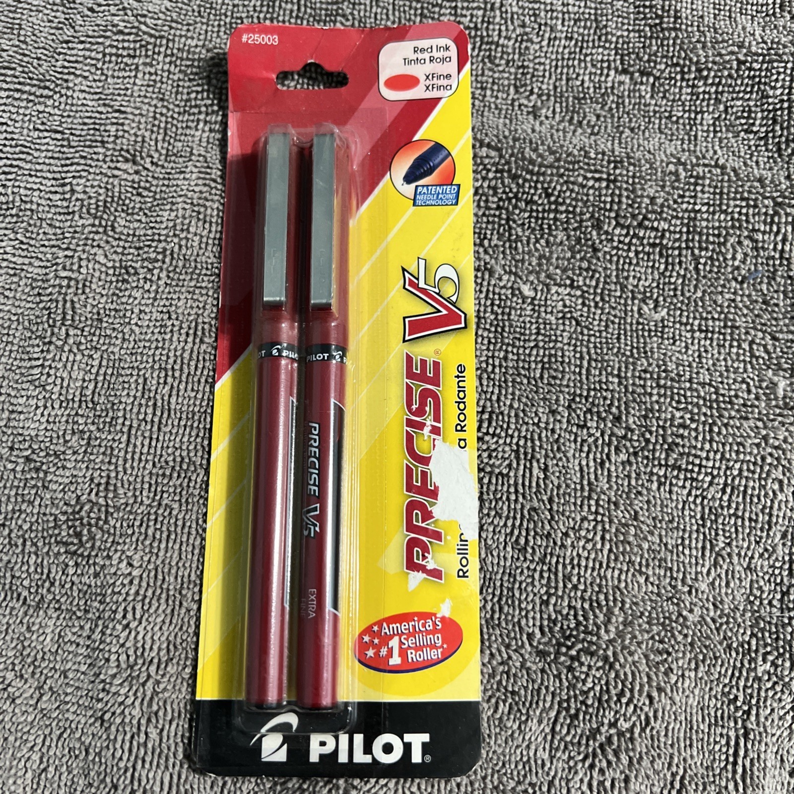 - 2 Ct PILOT Precise V5 - Extra-Fine Rollerball Pen - RED INK - Sealed Pack