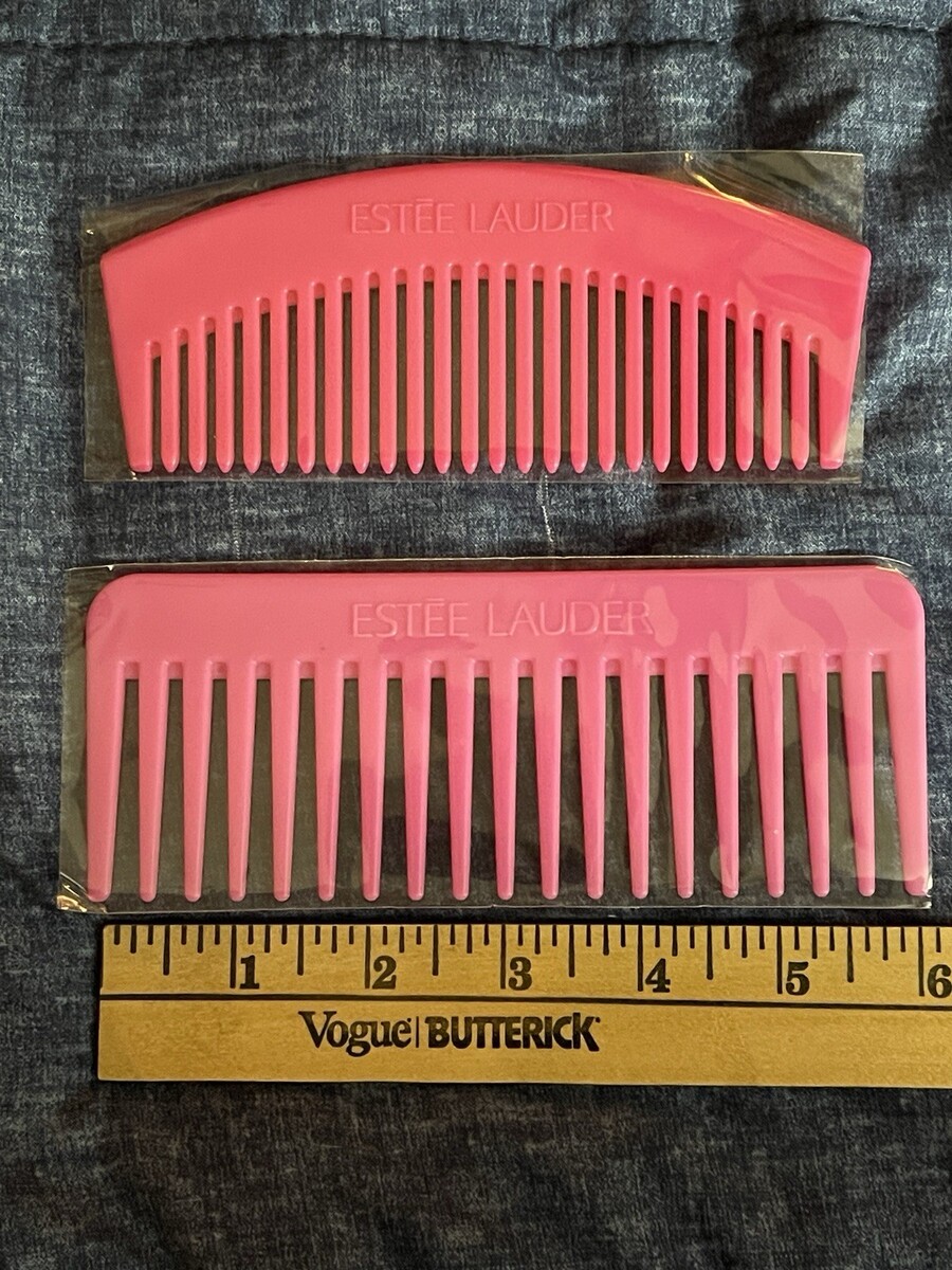 - 2 Estée Lauder Plastic Hair Combs Wide Tooth Pink New
