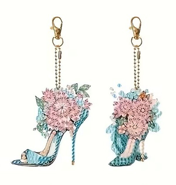 - 2 High Heel Keychains, Diamond Jewel Art, COMPLETED & SEALED