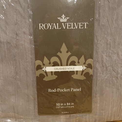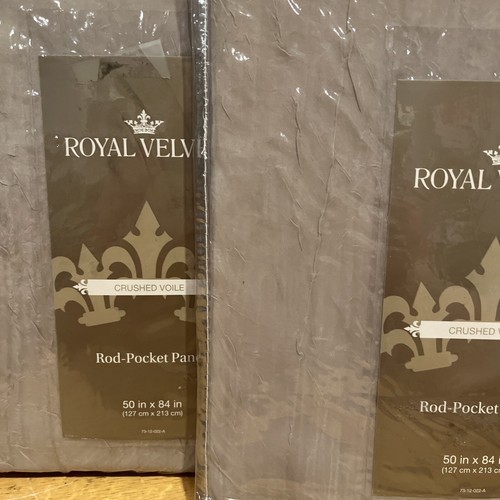 This product is a set of two Royal Velvet crushed voile sheer panels in a soft platinum color. They are wall-mounted rod pocket sheer panels with a solid pattern and a sheer transparency, providing a light and airy feel to any room. The panels are made of voile material and are 84 inches in length and 50 inches in width, suitable for a standard window size. They are machine washable for easy care and maintenance, adding a touch of elegance to your home decor.