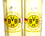 For sale is a wonderfull Set-of-2 rare, limited-edition Borussia Dortmund Soccer Team Seidel beerglasses from the Dortmunder Kronen brewery in Dortmund, Germany, celebrating Dortmunds inaugural 1966 Euro Cup wins against Auxerre/France and Manchester Unted / England Cup .