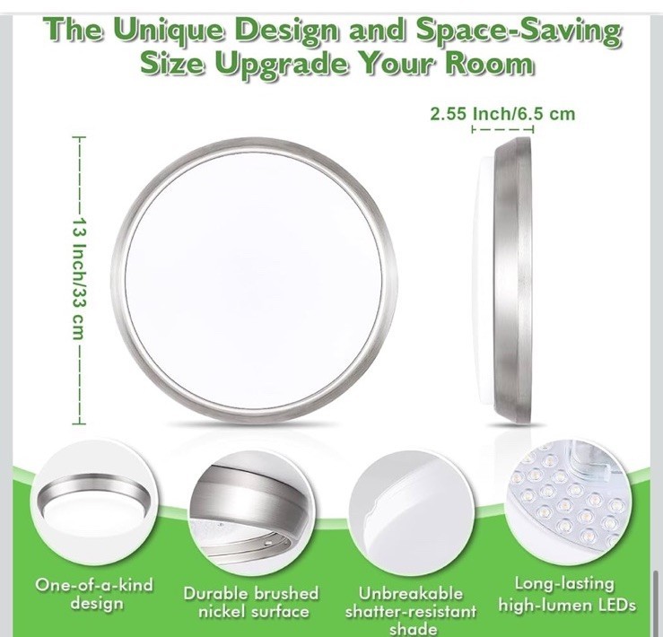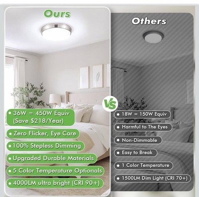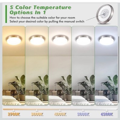 - 2 LED Dimmable Flush Mount 2700K/3000K/3500K/4000K/5000K/6500K Ceiling Light 13"