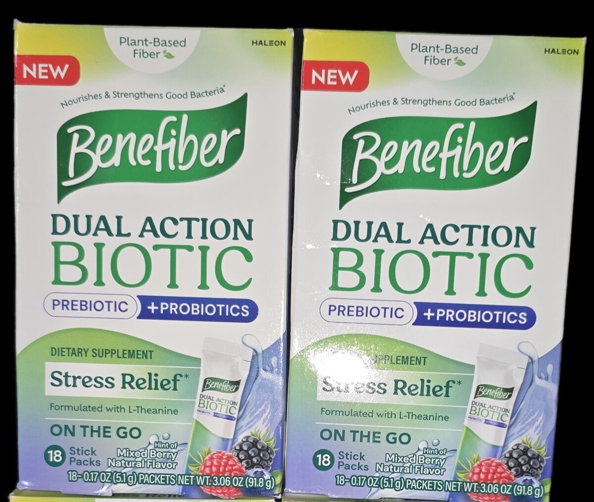 - 2-PK 18 Benefiber Dual Action Biotic, 18 Stick Packs Mixed Berry Exp12/25