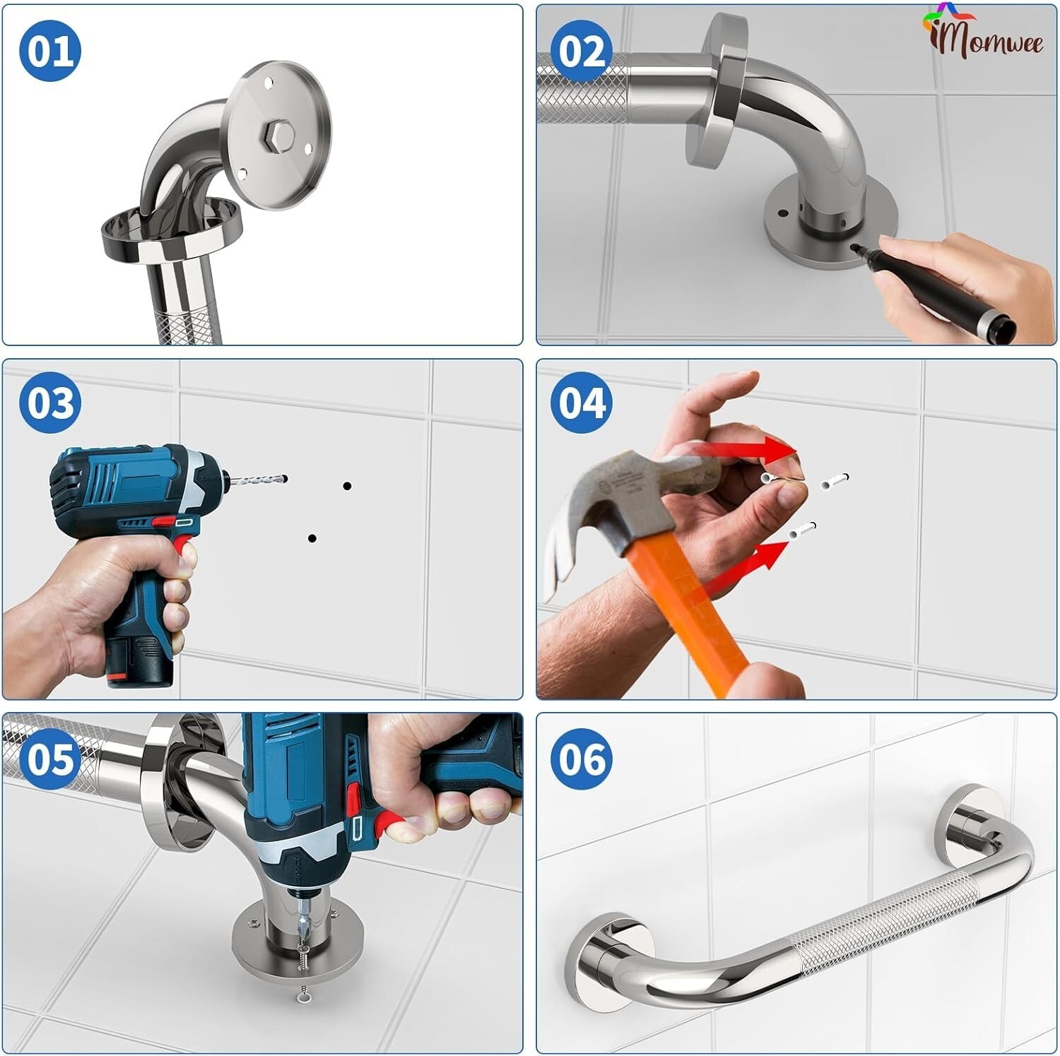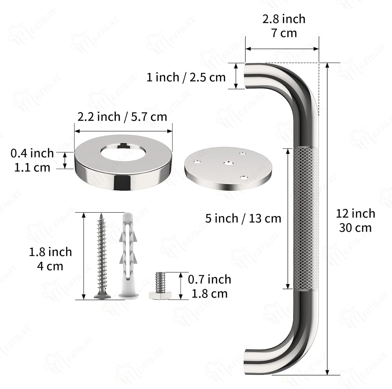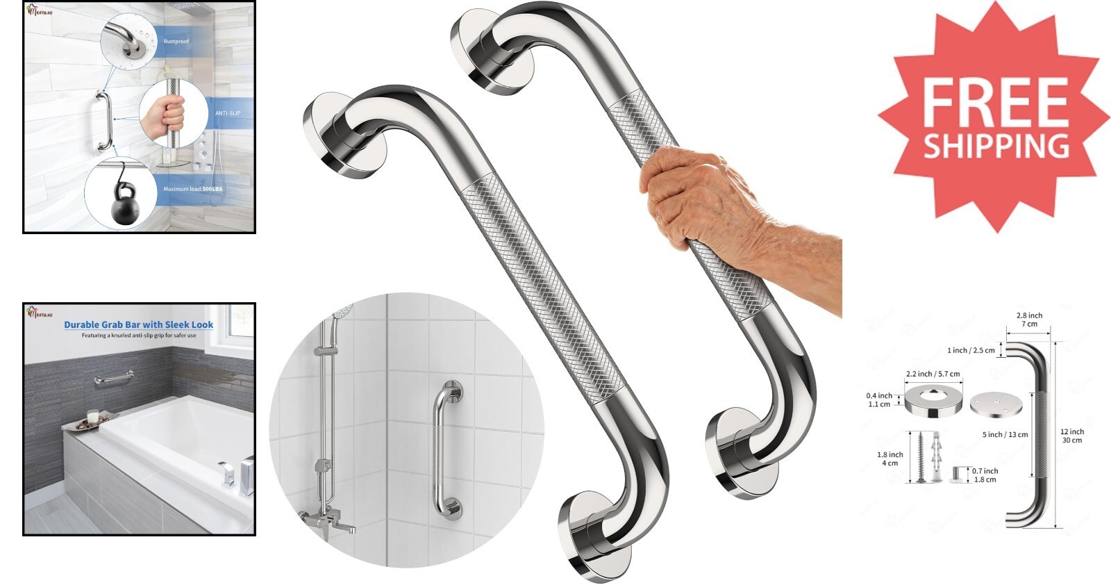 Enhance safety with the iMomwee 12-inch anti-slip safety grab bars, perfect for residential and commercial spaces. Crafted from durable stainless steel, each bar supports up to 500 lbs and features a knurled textured grip for reliable, slip-resistant handling. Designed for easy installation in tight areas with a concealed mount, these bars seamlessly blend into any space while providing a sturdy support point along bathrooms, stairways, pools, or laundry rooms. Ideal for elderly, disabled, pregnant women, and children, they serve as both safety aids and versatile handholds for hanging clothing or towels. Available in a convenient 2-pack, these grab bars combine durability with a sleek, clean look backed by a 3- . Safe, reliable, and discreet ? a smart addition to your safety essentials.
