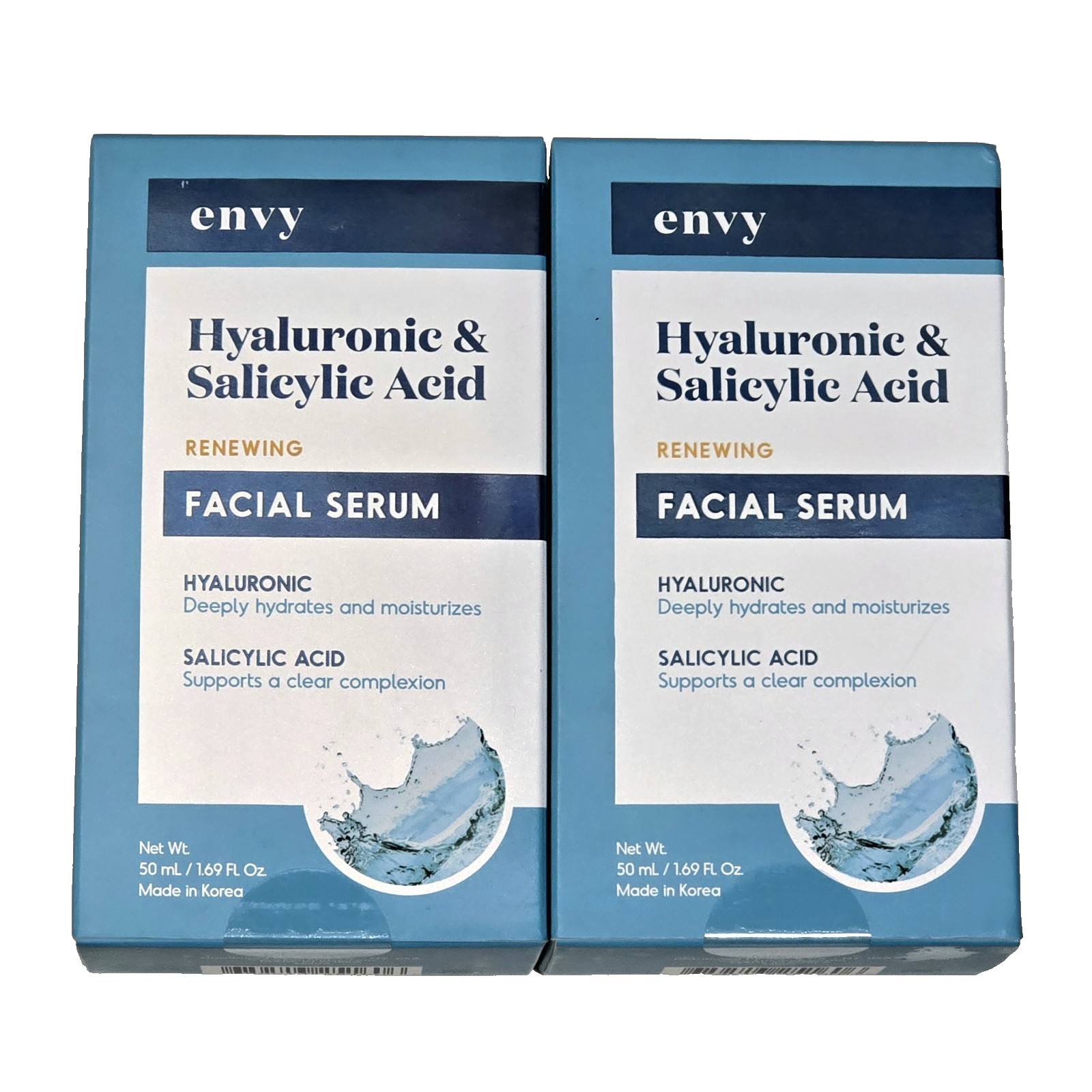 - 2 Pack Envy Hyaluronic & Salicylic Acid Renewing Facial Serum 1.69oz
