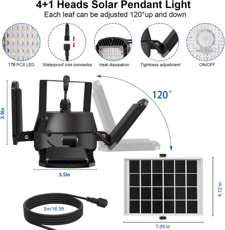 - 2-Pack Solar Shed Lights, 176 LED Motion Sensor Pendant with Remote