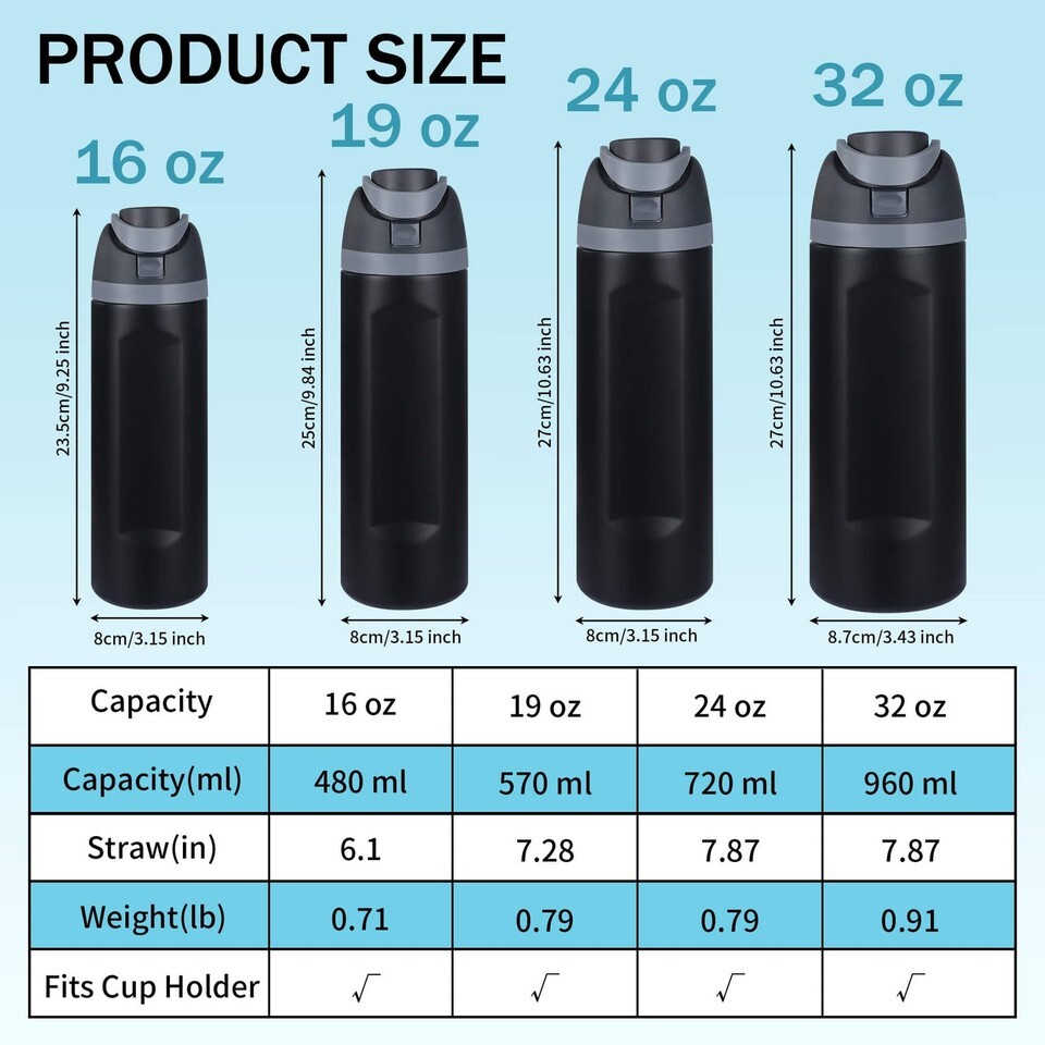 Stay hydrated anytime, anywhere with this 2-PackSports Water Bottle Set! Designed for active lifestyles, each bottle holds 1L/32oz, ensuring you have plenty of water for workouts, outdoor activities, travel, or daily use. Featuring a one-click flip lid, this bottle allows for quick, one-handed drinkingperfect for the gym, driving, or hiking. The leakproof design, with a silicone sealing ring and secure lock, prevents spills and leaks, so you can confidently carry it in your bag. Plus, the measurement markings on the transparent bottle help you track your water intake and maintain healthy hydration habits. Crafted from BPA-free, food-grade plastic, these bottles are lightweight, durable, and odor-free, making them a safe and reliable choice for everyday hydration. With two bottles included, you can keep one at home and one at work, or share with a friend. Whether you're at the gym, on a hike, or at the office, this 2-pack water bottle set is your perfect hydration companion!