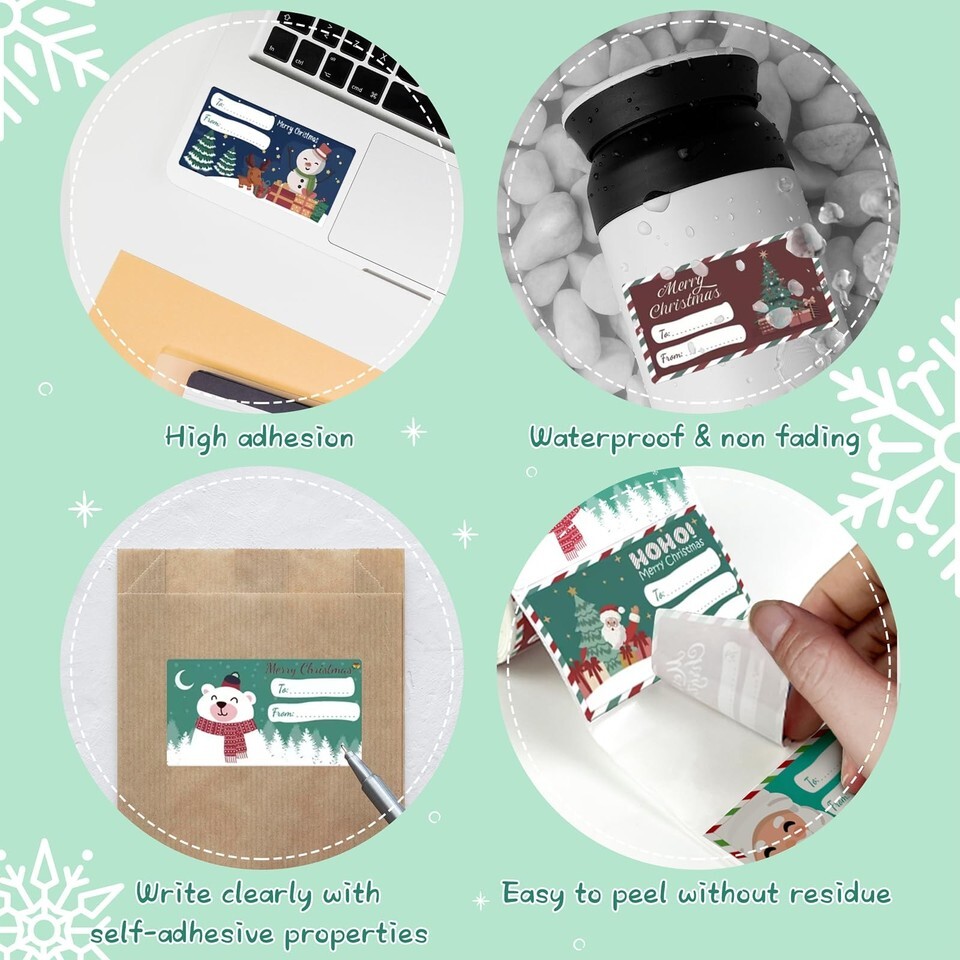 Ideal Christmas Gift Embellishment: Our Christmas Tags Have Santa, Snowman, and Reindeer-themed name tag stickers serve as the ultimate accent for presents, wrapping paper, packaging, bookmarks, scrapbooks, gift cards, envelopes, candy bags, greeting cards, gift paper wrappers, and Christmas gift labels; Perfect for adorning plastic, tin, or gift bags, they add a festive touch to all your holiday gifting