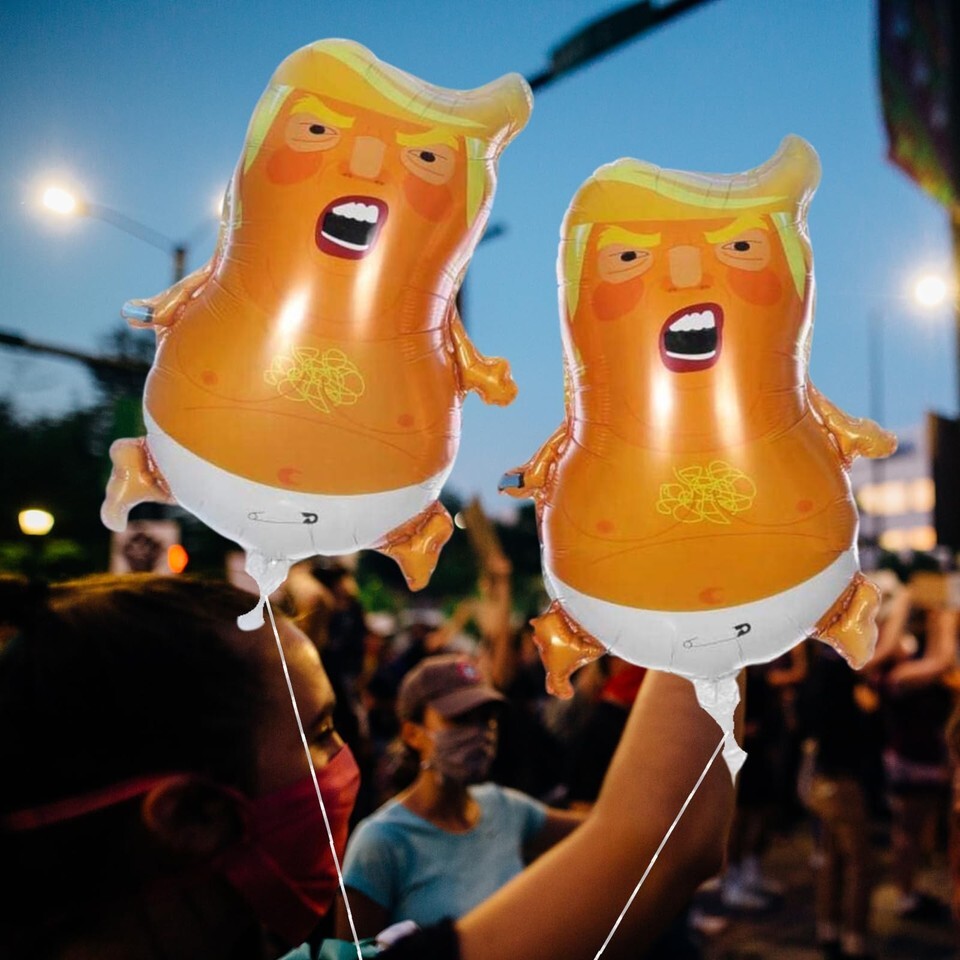 ? ICONIC BABY TRUMP DESIGN: Features a bold, double-sided print of the famous Baby Trump balloon ? a fun and symbolic statement for rallies, protests, or themed parties.