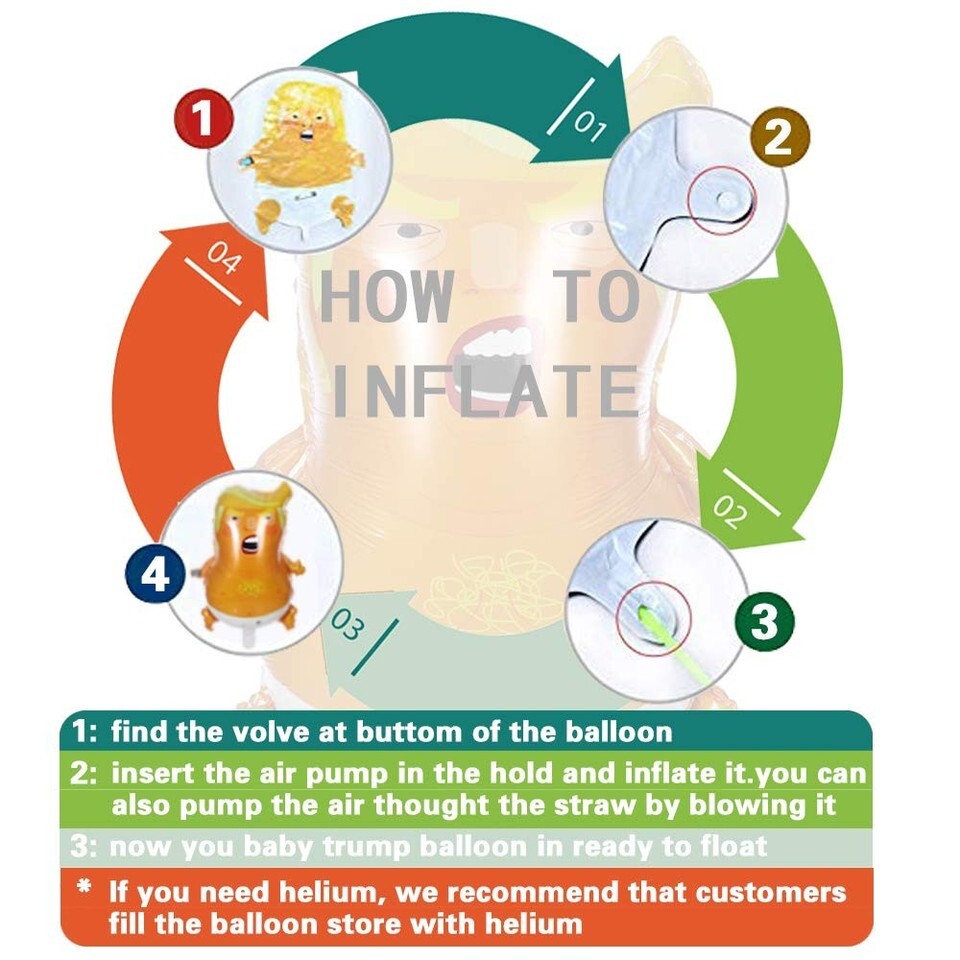 ? TWO-PACK WITH BALLOON RIBBON INCLUDED: Comes with two Baby Trump balloons and matching ribbon for easy hanging or handling ? perfect for events, photos, or gifts.