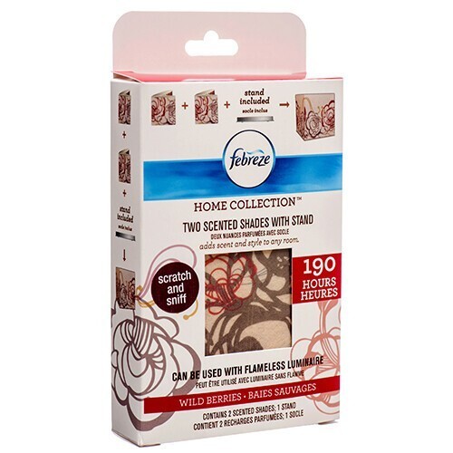 - 2 Packs Febreze Flameless Air Freshener Wild Berries 2 Shades & 1 Stand Pack