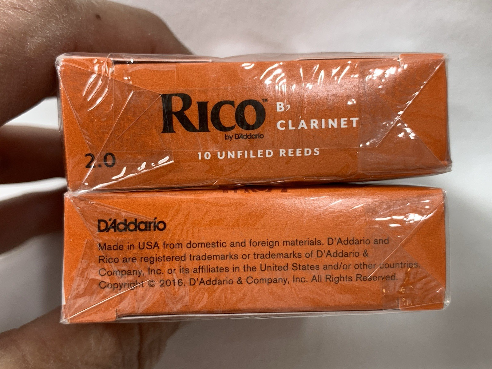 This is for 2 brand new packs of 10, 2.0 Clarinet RICO unfiled reed packs! Will get what is shown in the photos! Both brand new, unopened!