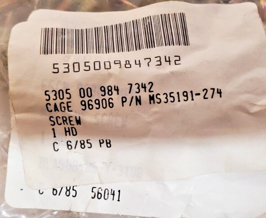 2 Packs of 99 units Military Machine Screws MS35191-274| FSCM 96906 (198 Qty)