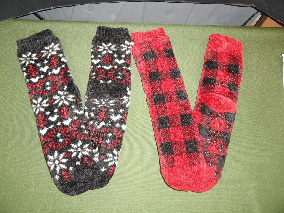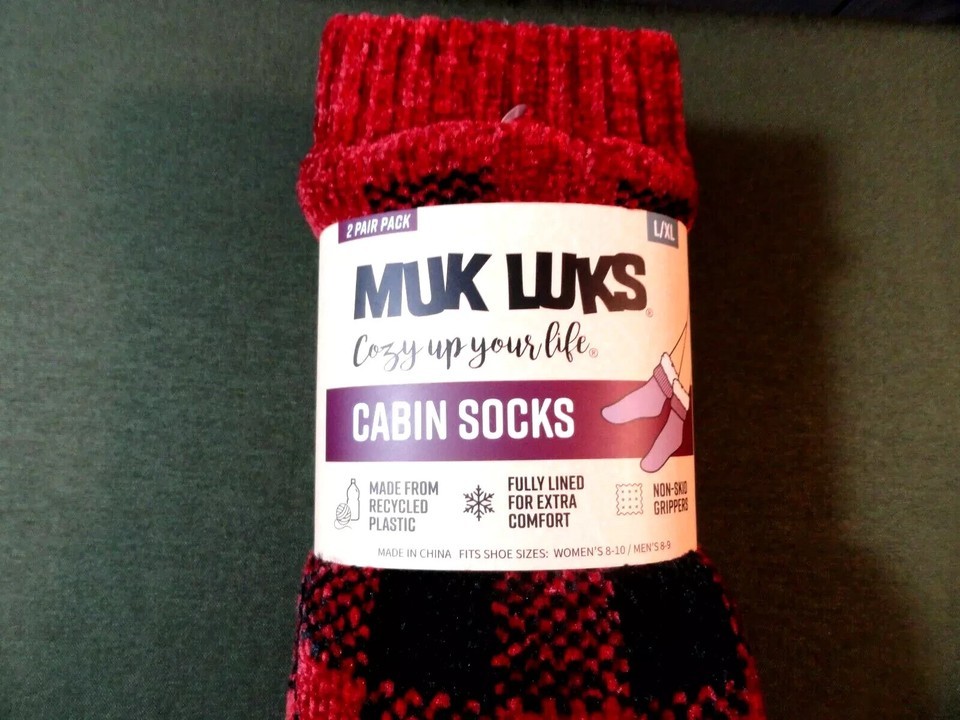 - 2 PAIR FULLY LINED MUK LUKS CABIN SLIPPER SHERPA SOCKS W/ GRIPPERS LARGE / XL
