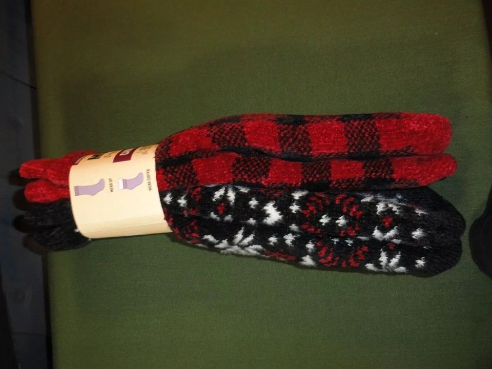 2 PAIR FULLY LINED MUK LUKS CABIN SLIPPER SHERPA SOCKS W/ GRIPPERS LARGE / XL