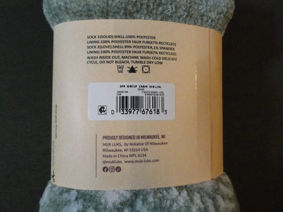 - 2 PAIR FULLY LINED MUK LUKS CABIN SLIPPER SHERPA SOCKS W/ GRIPPERS XL / L