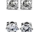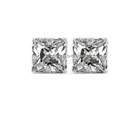 - 2 PAIRS CZ CLEAR ROUND+SQUARE MAGNETIC EARRINGS STUDS EAR BONE CUFF Men Women