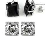2 PAIRS PIERCED CLEAR+BLACK SQUARE Sparkling CZ STUD EARRINGS For Mens/Womens