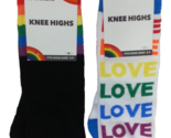 2 Pairs x Pride knee high RAINBOW & LOVE socks, Shoe Sz 5-9 NewWith Tag