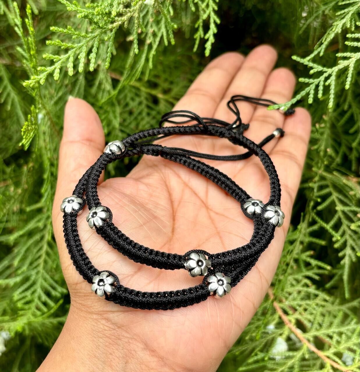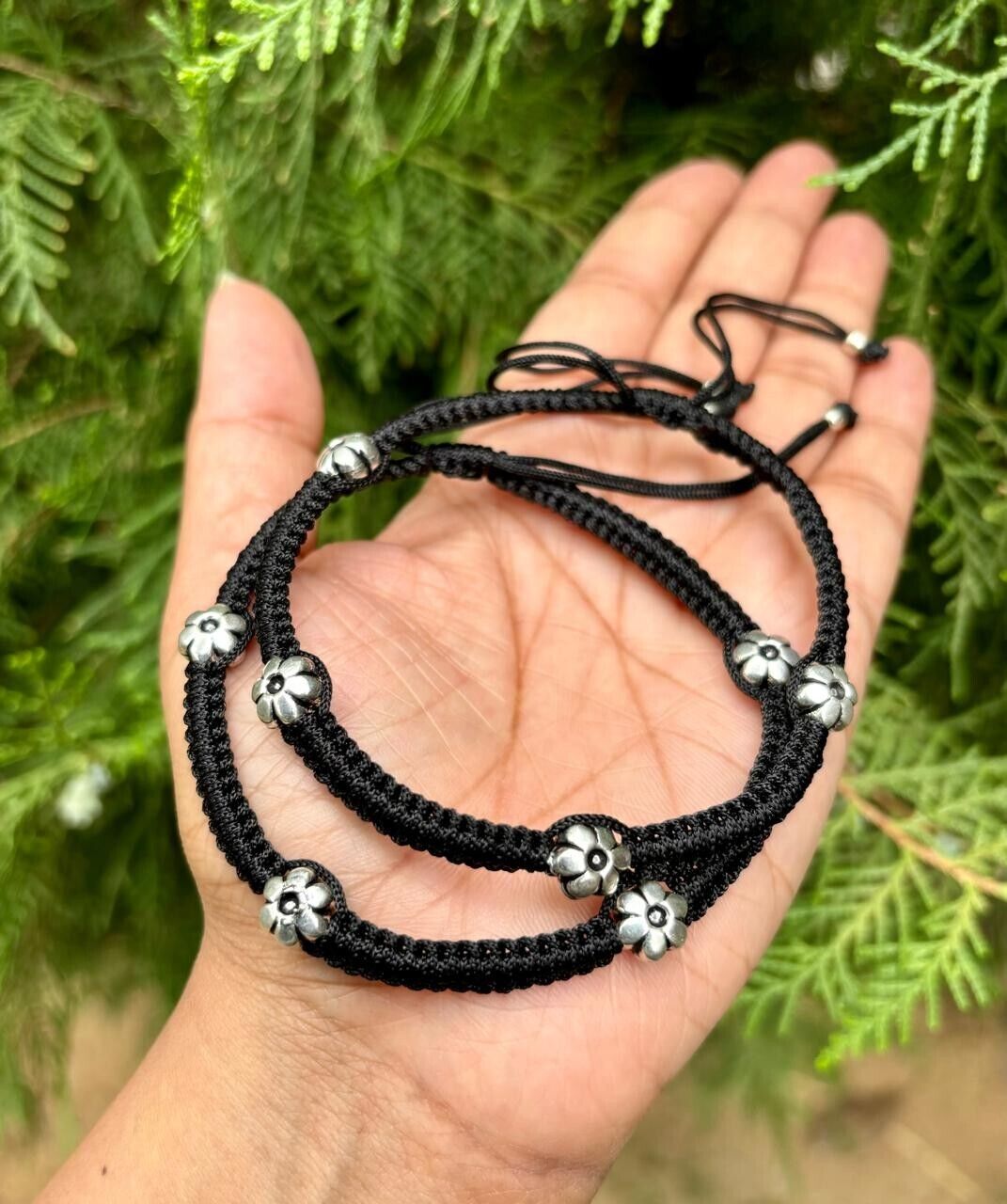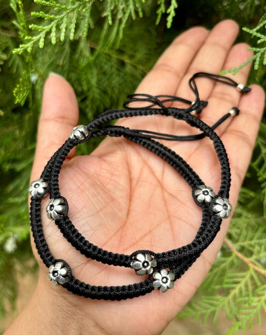 - 2 Pc 925 Silver Evil Eye Protection Feet Anklet Amulet Nazariya Adjustable flora