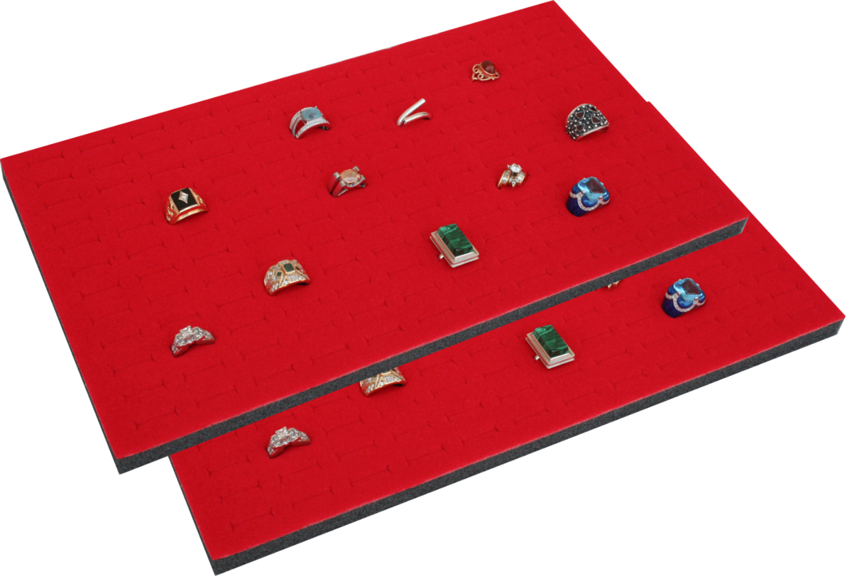 This is a new red foam ring display tray insert pad that holds 144 rings