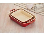 - 2 Piece Non-Stick Ceramic Stoneware Baking Dish Set in Cherry Red and Ivory