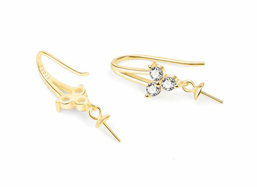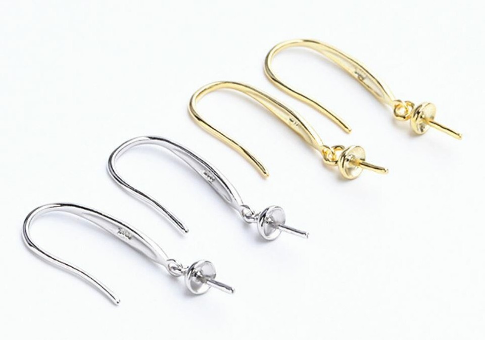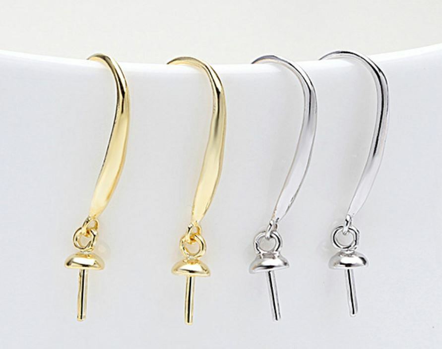 2 Pieces 925 Sterling Silver Pearl Earring Connectors Plus Hooks Jewelry Findings