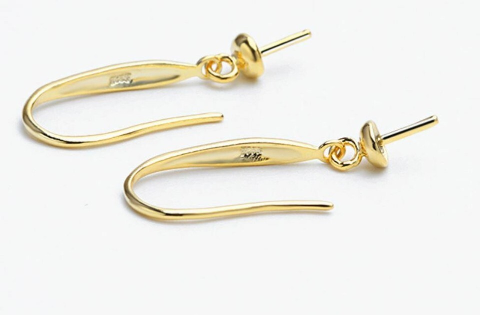 - 2 Pieces 925 Sterling Silver Pearl Earring Connectors + Hooks Jewelry Findings